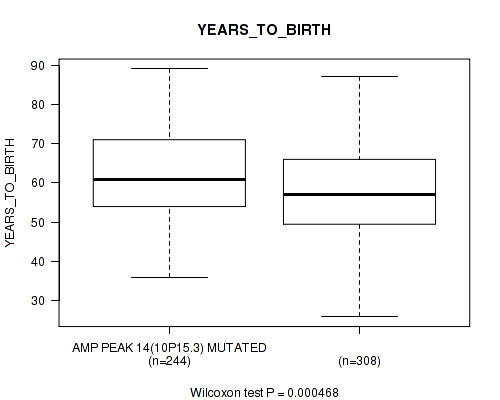 Table S14. Gene #26: 'amp_19q12' versus Clinical Feature #2: 'YEARS_TO_BIRTH'