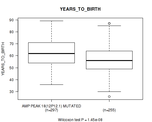 Figure S11. Get High-res Image Gene #18: 'amp_12p12.1' versus Clinical Feature #2: 'YEARS_TO_BIRTH'