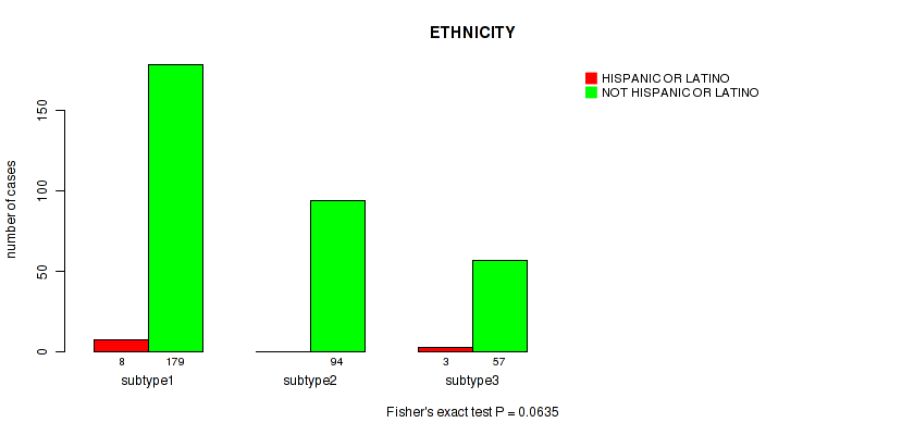 CNMF clustering analysis on sequencing-based mRNA expression data identified 3 subtypes that correlate to 'YEARS_TO_BIRTH' and 'ETHNICITY'.