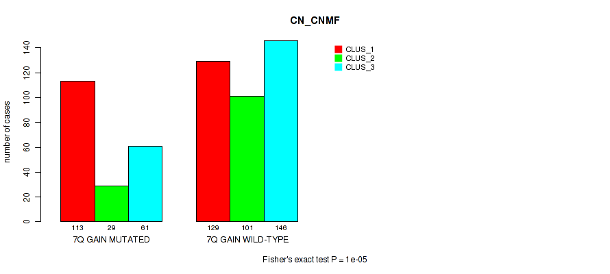 7p gain cnv correlated to 'MIR_CNMF', 'CN_CNMF', and 'METHLYATION_CNMF'.