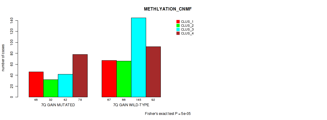 7q gain cnv correlated to 'MRNA_CHIERARCHICAL', 'CN_CNMF', and 'METHLYATION_CNMF'.