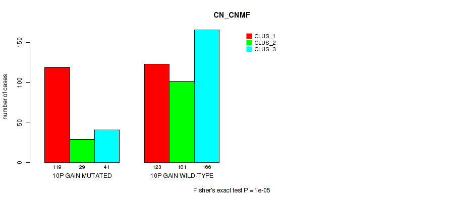 10p gain cnv correlated to 'MRNA_CNMF', 'MRNA_CHIERARCHICAL', 'CN_CNMF', 'METHLYATION_CNMF', 'MRNASEQ_CNMF', and 'MIRSEQ_CHIERARCHICAL'.