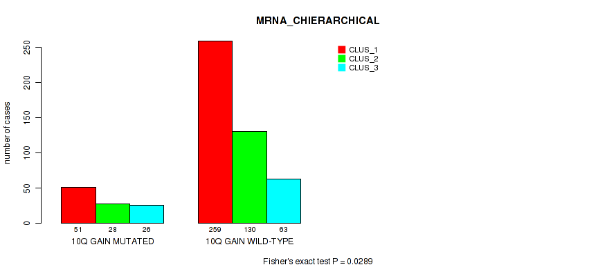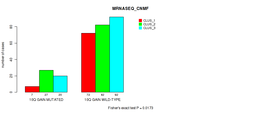 10q gain cnv correlated to 'MRNA_CNMF', 'MRNA_CHIERARCHICAL', 'MIR_CNMF', 'CN_CNMF', 'METHLYATION_CNMF', and 'MRNASEQ_CNMF'.
