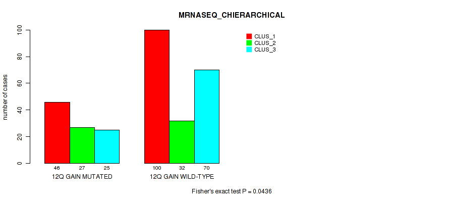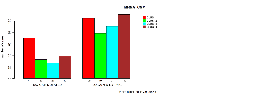12q gain cnv correlated to 'MRNA_CNMF', 'CN_CNMF', 'METHLYATION_CNMF', 'MRNASEQ_CNMF', 'MRNASEQ_CHIERARCHICAL', 'MIRSEQ_CHIERARCHICAL', and 'MIRSEQ_MATURE_CNMF'.