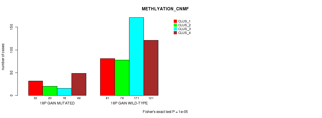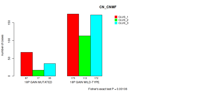 18p gain cnv correlated to 'CN_CNMF', 'METHLYATION_CNMF', and 'MRNASEQ_CNMF'.