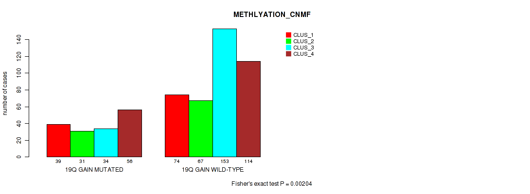 19q gain cnv correlated to 'CN_CNMF' and 'METHLYATION_CNMF'.