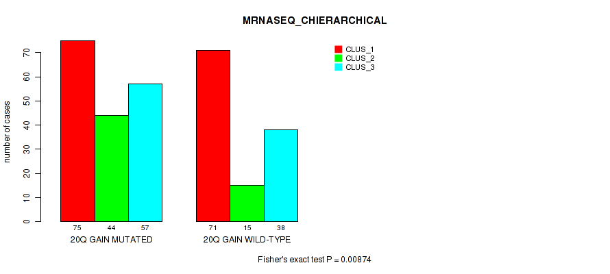 20q gain cnv correlated to 'MRNA_CNMF', 'MRNA_CHIERARCHICAL', 'MIR_CHIERARCHICAL', 'CN_CNMF', 'METHLYATION_CNMF', 'RPPA_CHIERARCHICAL', 'MRNASEQ_CHIERARCHICAL', and 'MIRSEQ_CHIERARCHICAL'.