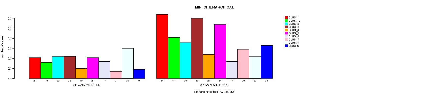 2p gain cnv correlated to 'MRNA_CNMF', 'MRNA_CHIERARCHICAL', 'MIR_CHIERARCHICAL', 'CN_CNMF', 'METHLYATION_CNMF', 'RPPA_CNMF', 'MRNASEQ_CNMF', 'MRNASEQ_CHIERARCHICAL', and 'MIRSEQ_CHIERARCHICAL'.