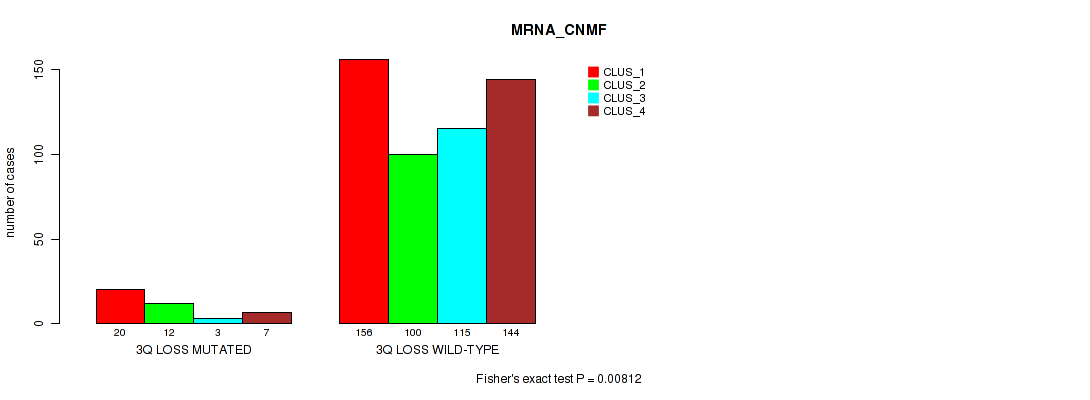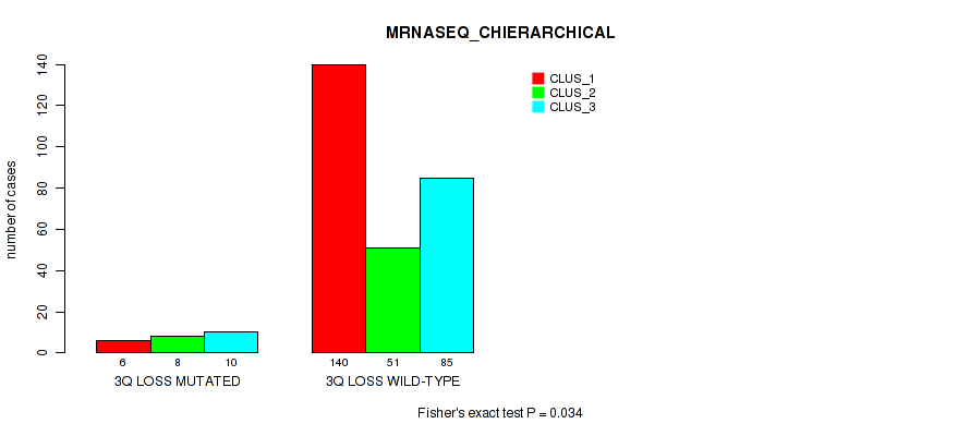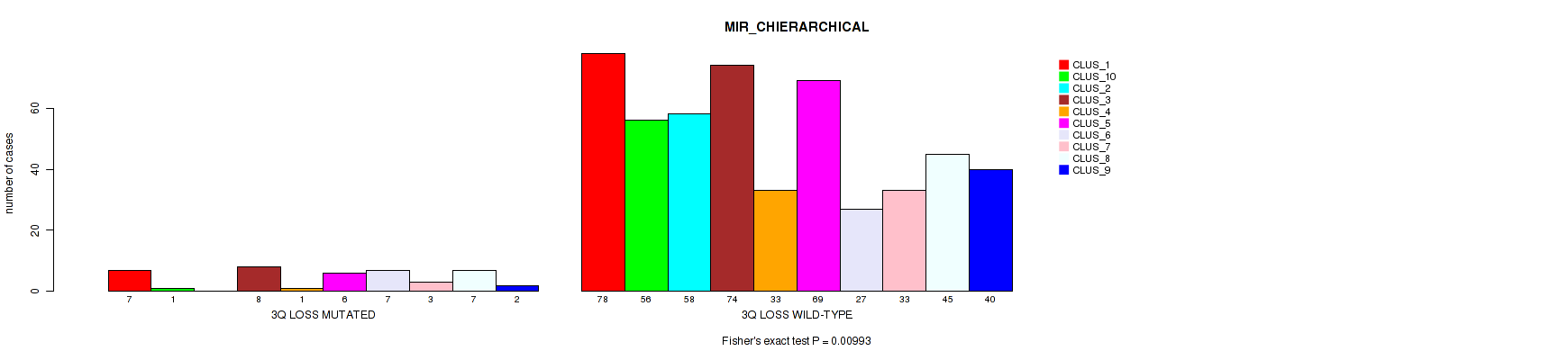 3q loss cnv correlated to 'MRNA_CNMF', 'MIR_CHIERARCHICAL', 'CN_CNMF', 'METHLYATION_CNMF', 'MRNASEQ_CHIERARCHICAL', and 'MIRSEQ_CHIERARCHICAL'.