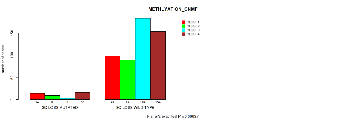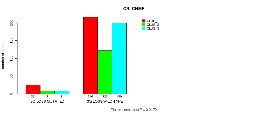 3q gain cnv correlated to 'CN_CNMF' and 'METHLYATION_CNMF'.