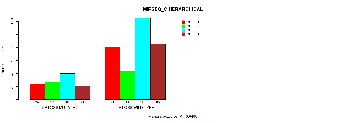 5p loss cnv correlated to 'MRNA_CHIERARCHICAL', 'CN_CNMF', 'METHLYATION_CNMF', 'MRNASEQ_CNMF', 'MRNASEQ_CHIERARCHICAL', and 'MIRSEQ_CHIERARCHICAL'.