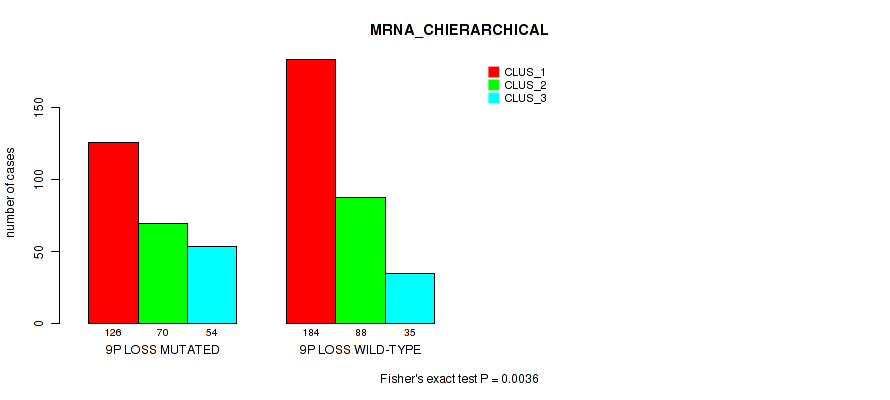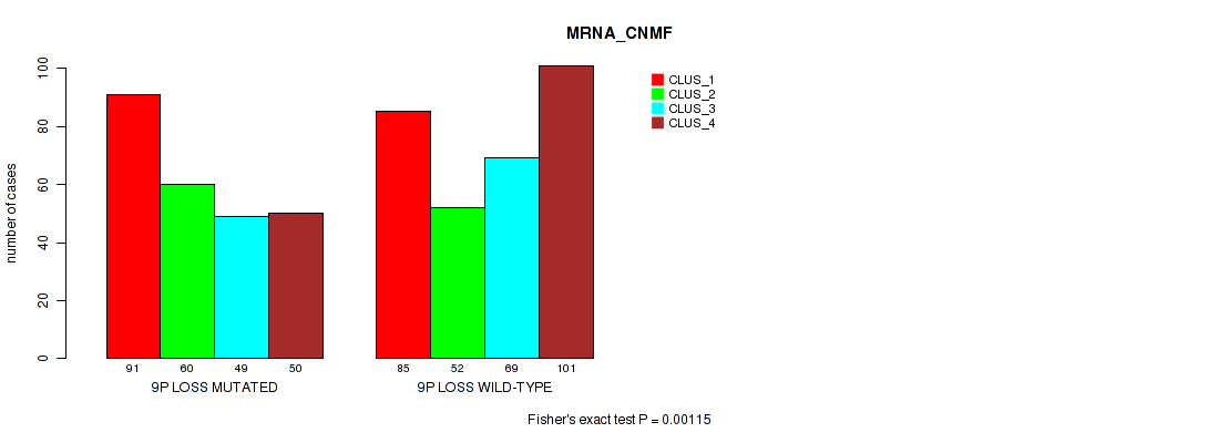 9p loss cnv correlated to 'MRNA_CNMF', 'MRNA_CHIERARCHICAL', 'CN_CNMF', and 'METHLYATION_CNMF'.