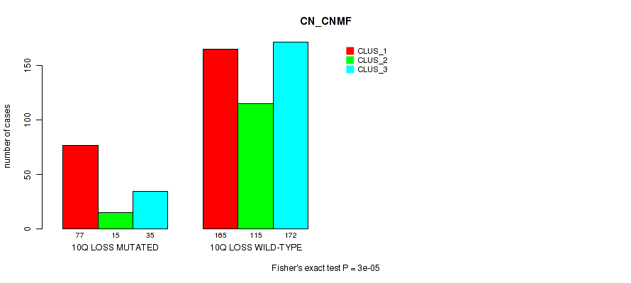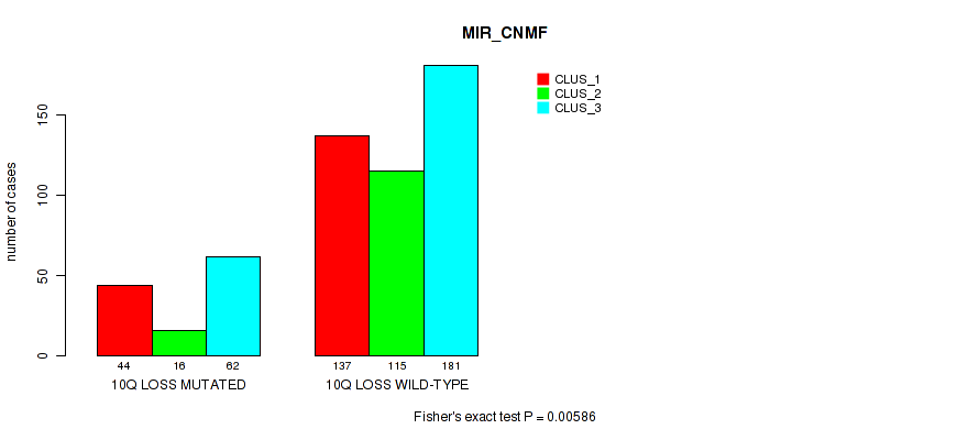10q loss cnv correlated to 'MIR_CNMF', 'CN_CNMF', and 'METHLYATION_CNMF'.