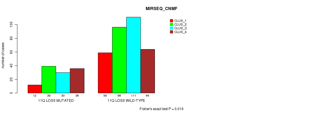 11q loss cnv correlated to 'CN_CNMF', 'METHLYATION_CNMF', and 'MIRSEQ_CNMF'.