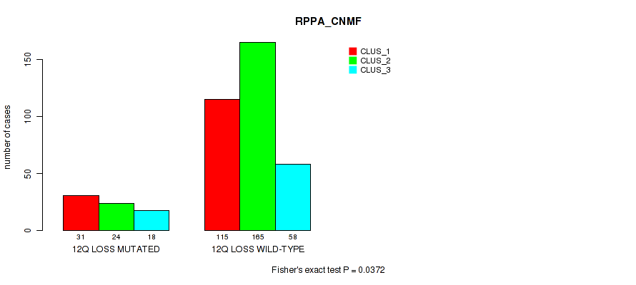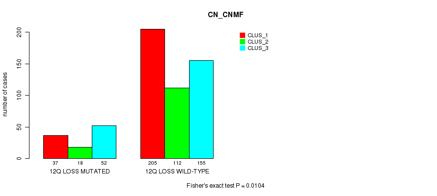 12q loss cnv correlated to 'CN_CNMF', 'RPPA_CNMF', and 'MIRSEQ_CNMF'.