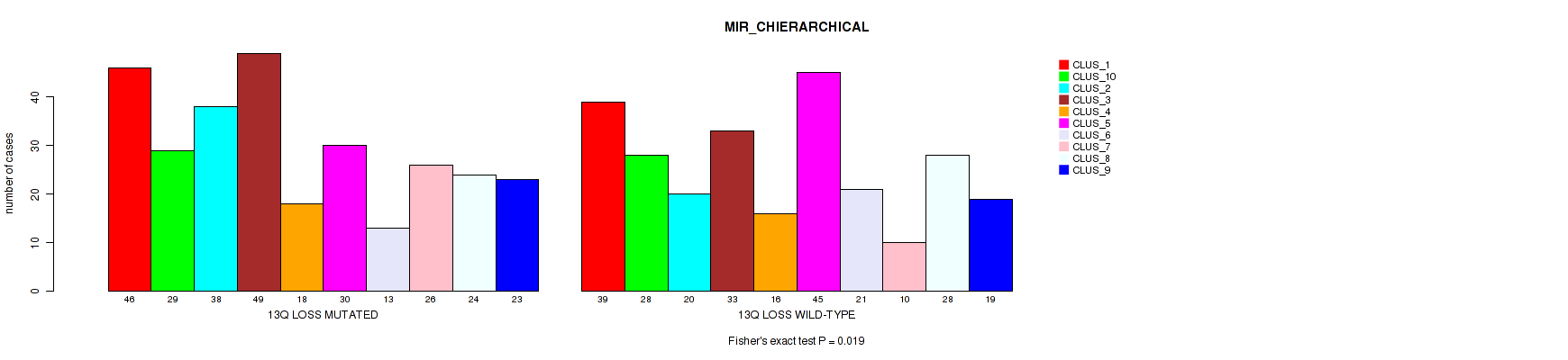 19q loss cnv correlated to 'MIR_CHIERARCHICAL' and 'CN_CNMF'.