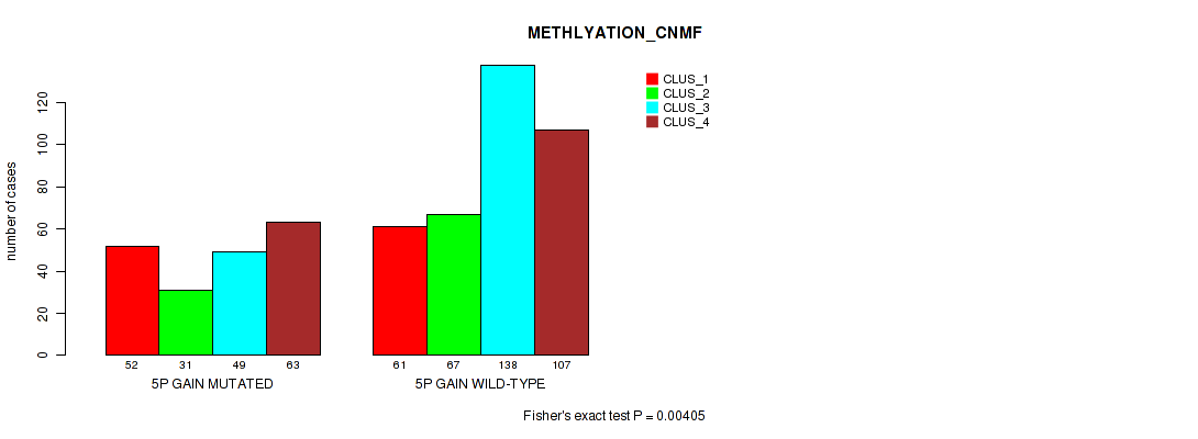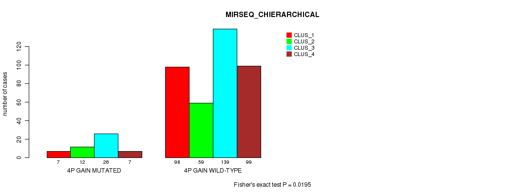 4p gain cnv correlated to 'METHLYATION_CNMF' and 'MIRSEQ_CHIERARCHICAL'.