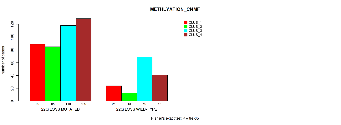 Figure S264. Get High-res Image Gene #80: '22q loss' versus Molecular Subtype #6: 'METHLYATION_CNMF'
