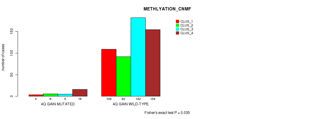 4q gain cnv correlated to 'CN_CNMF' and 'METHLYATION_CNMF'.