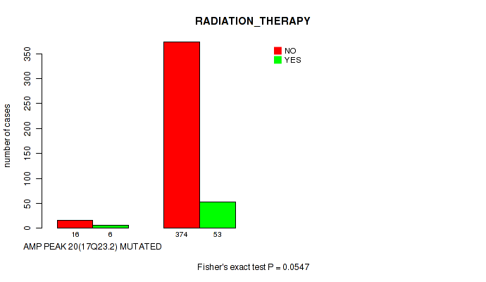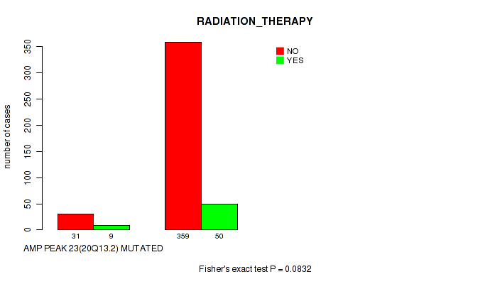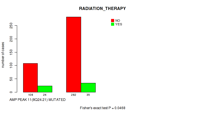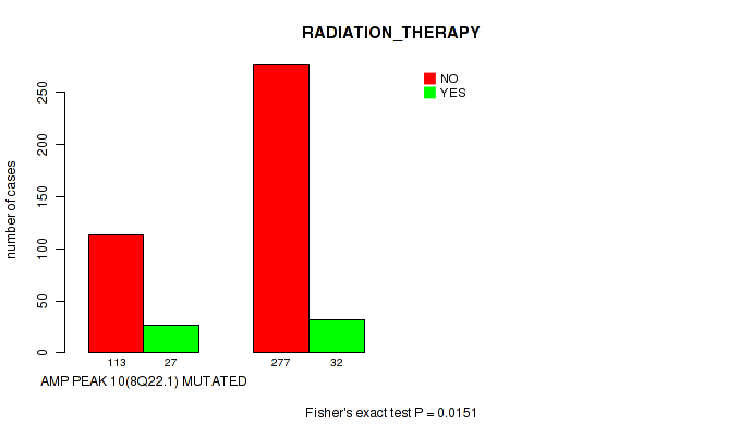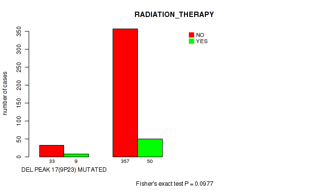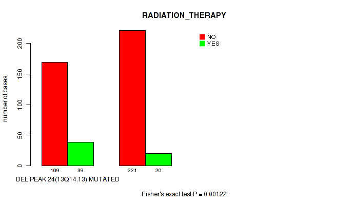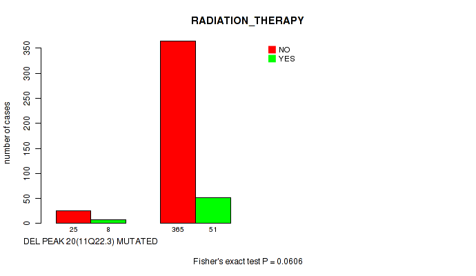 Figure S332. Get High-res Image Gene #62: 'del_21q22.2' versus Clinical Feature #5: 'RADIATION_THERAPY'