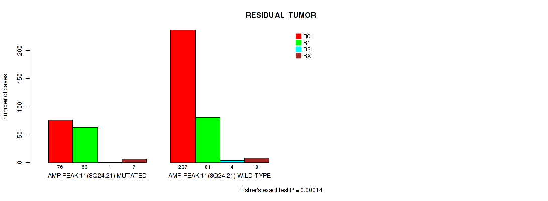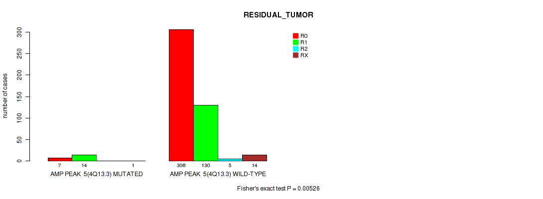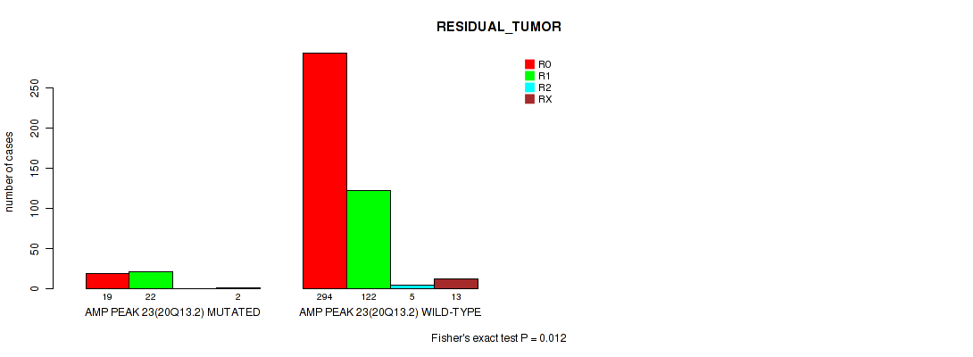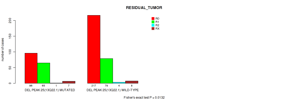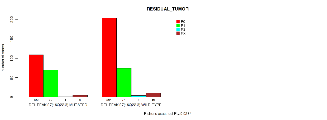 Table S321. Gene #60: 'del_18q23' versus Clinical Feature #7: 'RESIDUAL_TUMOR'