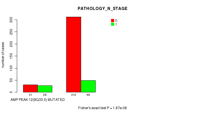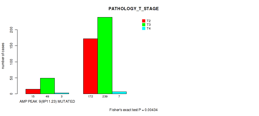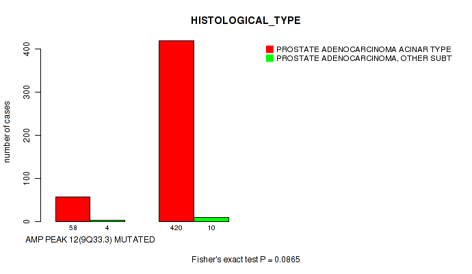 amp_9q33.3 cnv correlated to 'YEARS_TO_BIRTH', 'PATHOLOGY_T_STAGE', 'PATHOLOGY_N_STAGE', 'HISTOLOGICAL_TYPE', 'RESIDUAL_TUMOR', 'NUMBER_OF_LYMPH_NODES', and 'GLEASON_SCORE'.