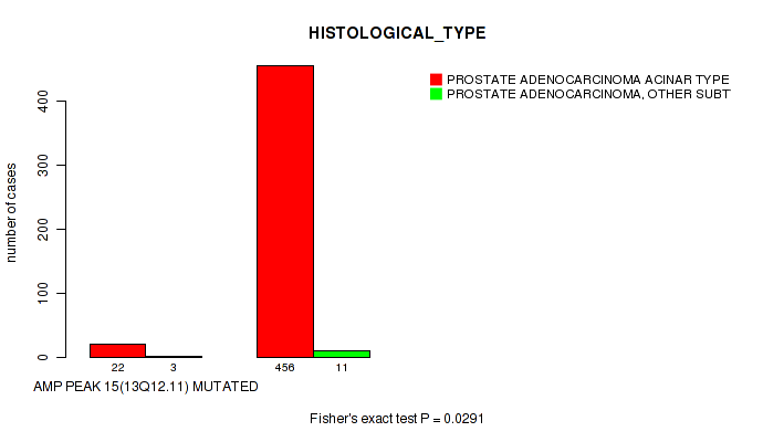 amp_13q12.11 cnv correlated to 'YEARS_TO_BIRTH', 'PATHOLOGY_T_STAGE', 'HISTOLOGICAL_TYPE', 'NUMBER_OF_LYMPH_NODES', and 'GLEASON_SCORE'.