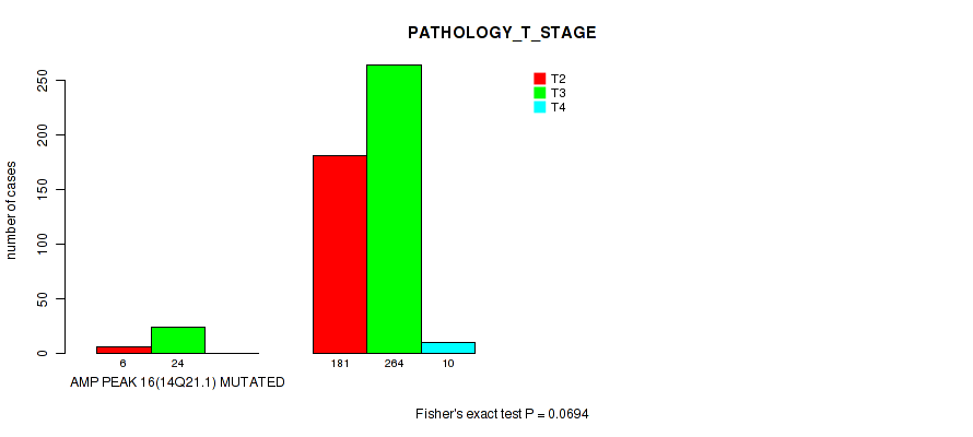 amp_14q21.1 cnv correlated to 'YEARS_TO_BIRTH', 'PATHOLOGY_T_STAGE', 'PATHOLOGY_N_STAGE', 'RADIATION_THERAPY', 'NUMBER_OF_LYMPH_NODES', and 'GLEASON_SCORE'.