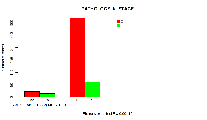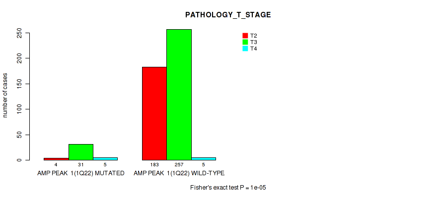 amp_1q22 cnv correlated to 'YEARS_TO_BIRTH', 'PATHOLOGY_T_STAGE', 'PATHOLOGY_N_STAGE', 'RADIATION_THERAPY', 'HISTOLOGICAL_TYPE', 'RESIDUAL_TUMOR', 'NUMBER_OF_LYMPH_NODES', and 'GLEASON_SCORE'.