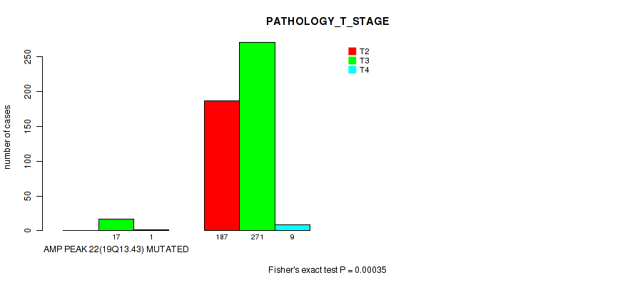 Figure S327. Get High-res Image Gene #61: 'del_19q13.2' versus Clinical Feature #3: 'PATHOLOGY_T_STAGE'