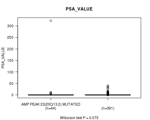 Figure S324. Get High-res Image Gene #60: 'del_18q23' versus Clinical Feature #10: 'PSA_VALUE'
