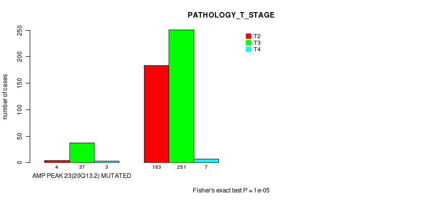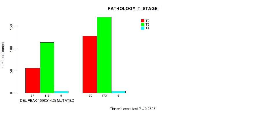Figure S319. Get High-res Image Gene #60: 'del_18q23' versus Clinical Feature #3: 'PATHOLOGY_T_STAGE'
