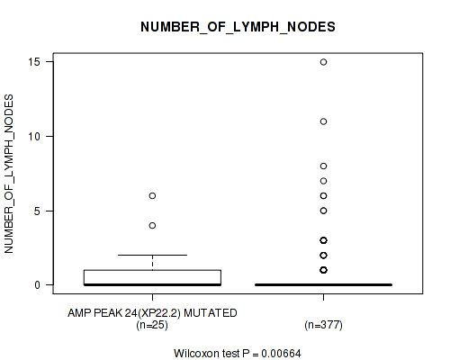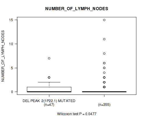 Table S333. Gene #62: 'del_21q22.2' versus Clinical Feature #8: 'NUMBER_OF_LYMPH_NODES'