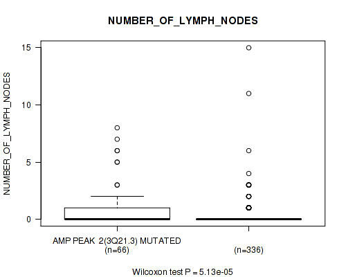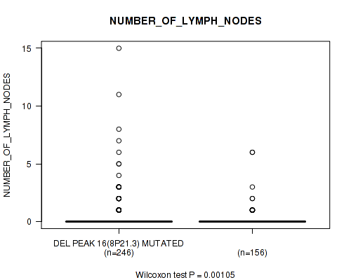 Figure S333. Get High-res Image Gene #62: 'del_21q22.2' versus Clinical Feature #8: 'NUMBER_OF_LYMPH_NODES'