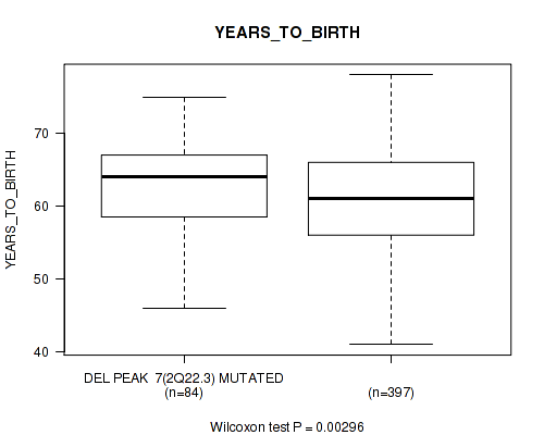 del_2q22.3 cnv correlated to 'YEARS_TO_BIRTH' and 'GLEASON_SCORE'.