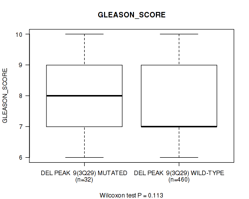 del_3q29 cnv correlated to 'GLEASON_SCORE'.