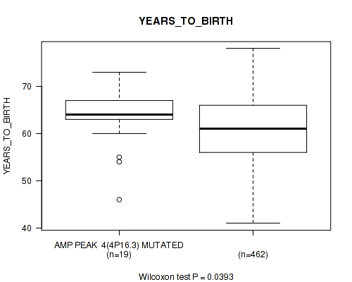 amp_4p16.3 cnv correlated to 'YEARS_TO_BIRTH', 'PATHOLOGY_T_STAGE', and 'GLEASON_SCORE'.