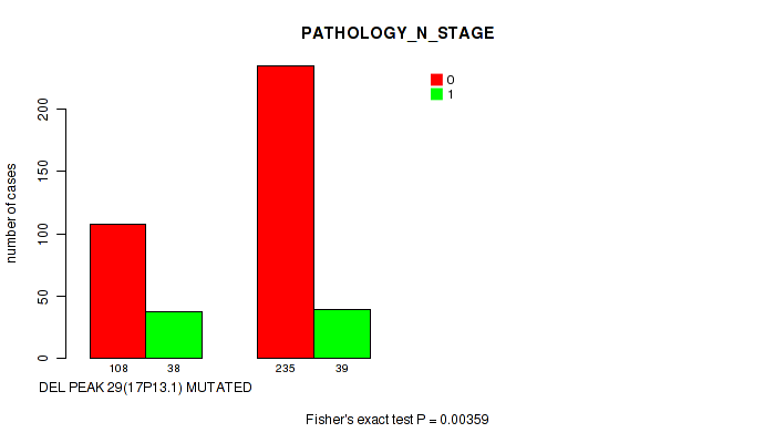 Table S320. Gene #60: 'del_18q23' versus Clinical Feature #4: 'PATHOLOGY_N_STAGE'