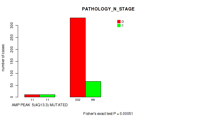 amp_4q13.3 cnv correlated to 'YEARS_TO_BIRTH', 'PATHOLOGY_T_STAGE', 'PATHOLOGY_N_STAGE', 'RESIDUAL_TUMOR', 'NUMBER_OF_LYMPH_NODES', and 'GLEASON_SCORE'.