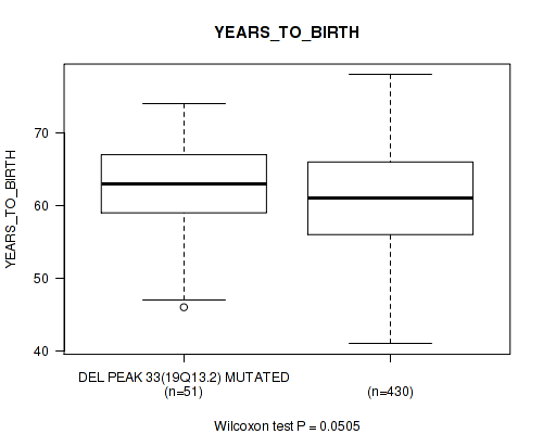 | DEL PEAK 33(19Q13.2) MUTATED | 51 | 62.6 (6.6) |