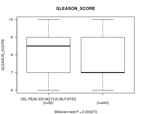 | DEL PEAK 33(19Q13.2) MUTATED | 11 | 37 | 3 |