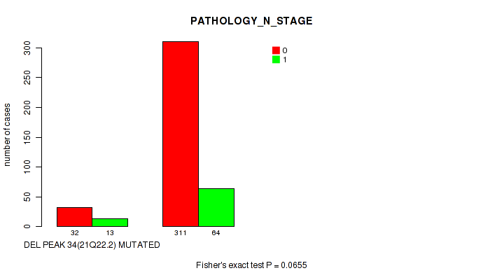Figure S331. Get High-res Image Gene #62: 'del_21q22.2' versus Clinical Feature #4: 'PATHOLOGY_N_STAGE'