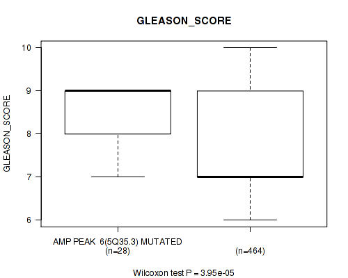 amp_5q35.3 cnv correlated to 'YEARS_TO_BIRTH', 'PATHOLOGY_T_STAGE', 'PATHOLOGY_N_STAGE', 'RESIDUAL_TUMOR', 'NUMBER_OF_LYMPH_NODES', and 'GLEASON_SCORE'.