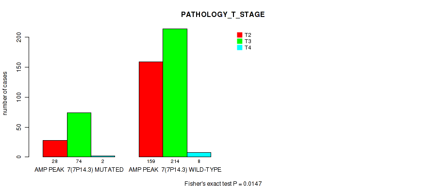 amp_7p14.3 cnv correlated to 'YEARS_TO_BIRTH', 'PATHOLOGY_T_STAGE', 'RESIDUAL_TUMOR', and 'GLEASON_SCORE'.