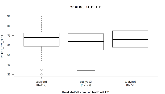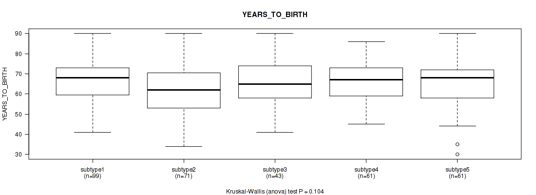 | YEARS TO BIRTH | Kruskal-Wallis (anova) |