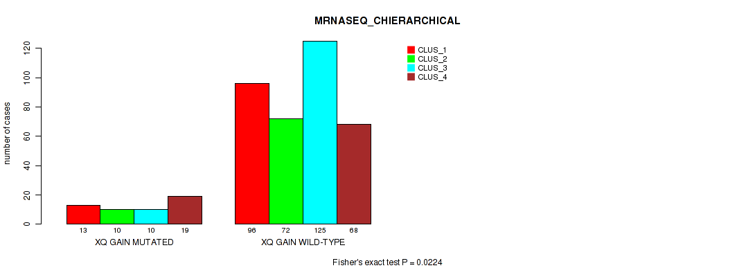xq gain cnv correlated to 'CN_CNMF', 'METHLYATION_CNMF', 'MRNASEQ_CHIERARCHICAL', and 'MIRSEQ_CNMF'.