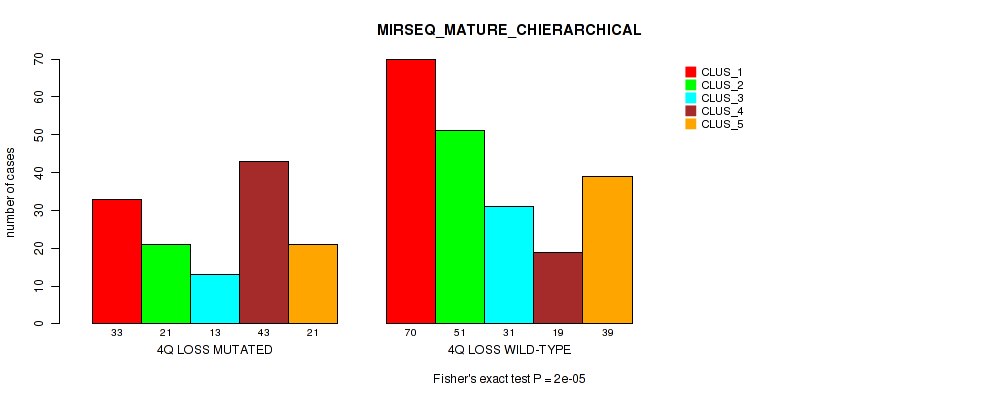 4q loss cnv correlated to 'CN_CNMF', 'METHLYATION_CNMF', 'MRNASEQ_CNMF', 'MRNASEQ_CHIERARCHICAL', 'MIRSEQ_CNMF', 'MIRSEQ_CHIERARCHICAL', and 'MIRSEQ_MATURE_CHIERARCHICAL'.