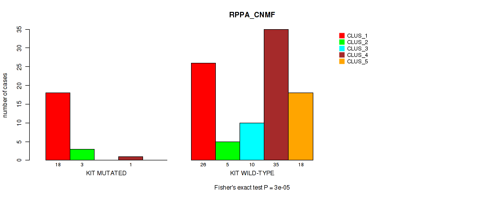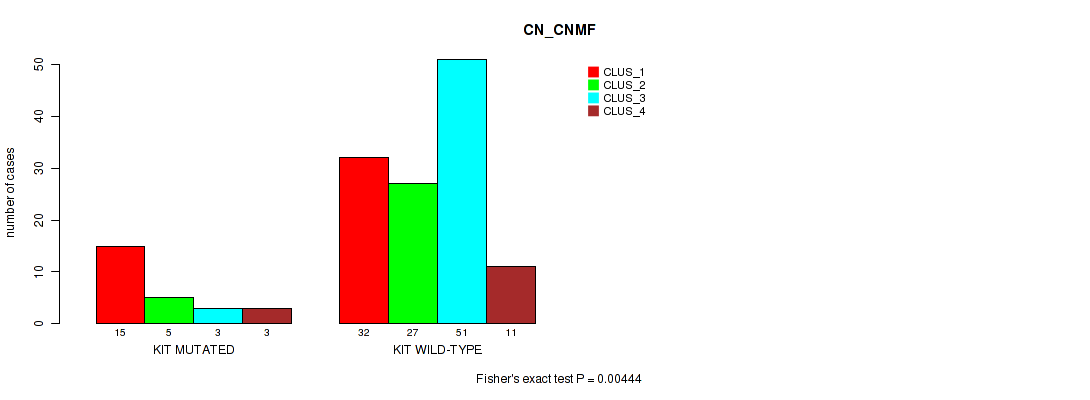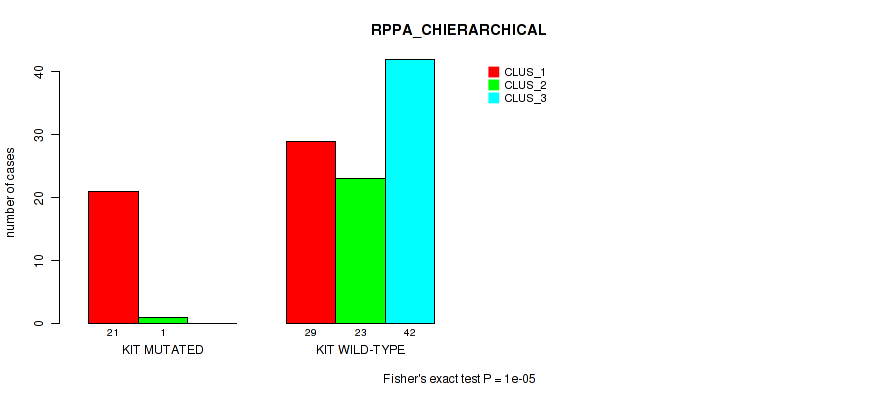 KIT mutation correlated to 'CN_CNMF', 'METHLYATION_CNMF', 'RPPA_CNMF', 'RPPA_CHIERARCHICAL', 'MRNASEQ_CNMF', 'MRNASEQ_CHIERARCHICAL', 'MIRSEQ_CNMF', 'MIRSEQ_CHIERARCHICAL', 'MIRSEQ_MATURE_CNMF', and 'MIRSEQ_MATURE_CHIERARCHICAL'.