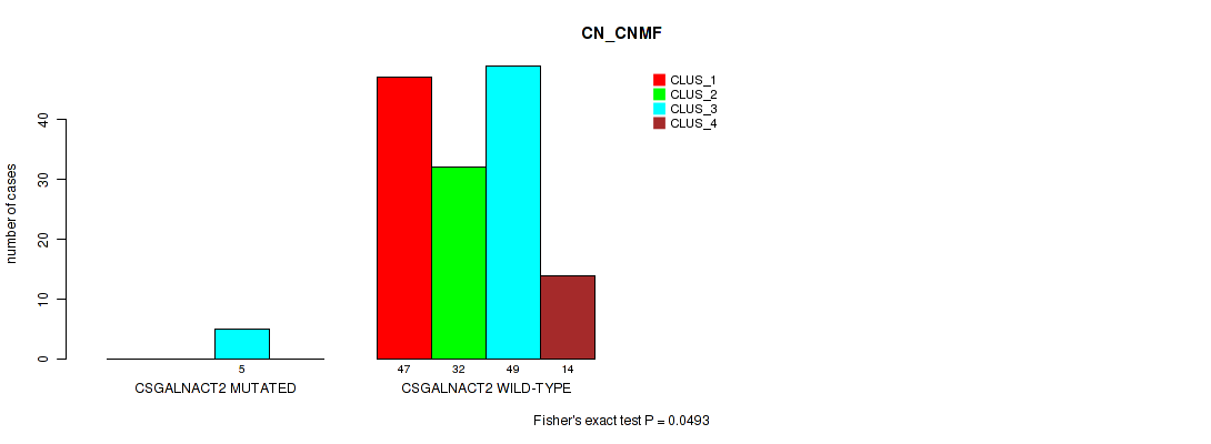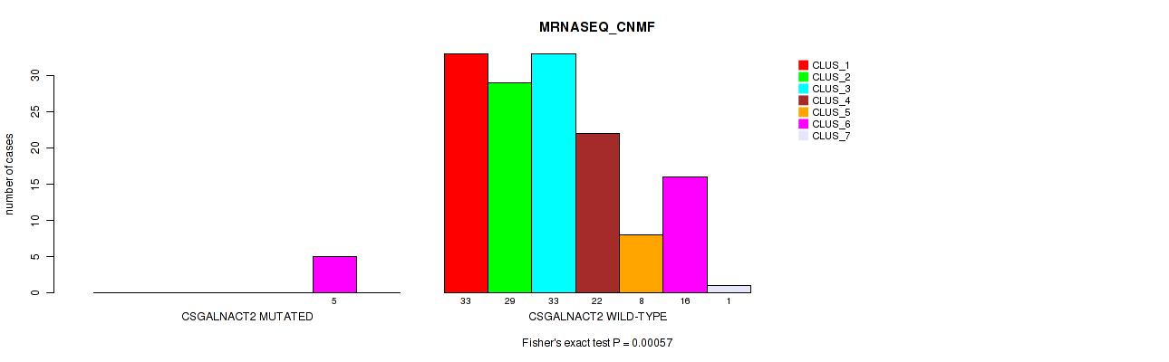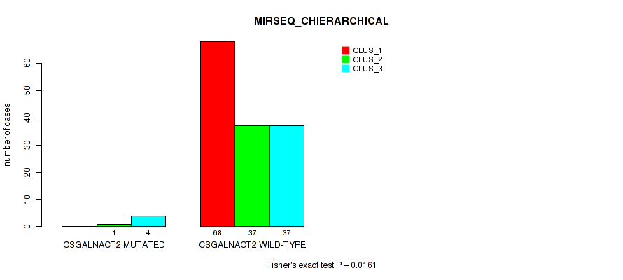 CSGALNACT2 mutation correlated to 'MRNASEQ_CNMF' and 'MRNASEQ_CHIERARCHICAL'.