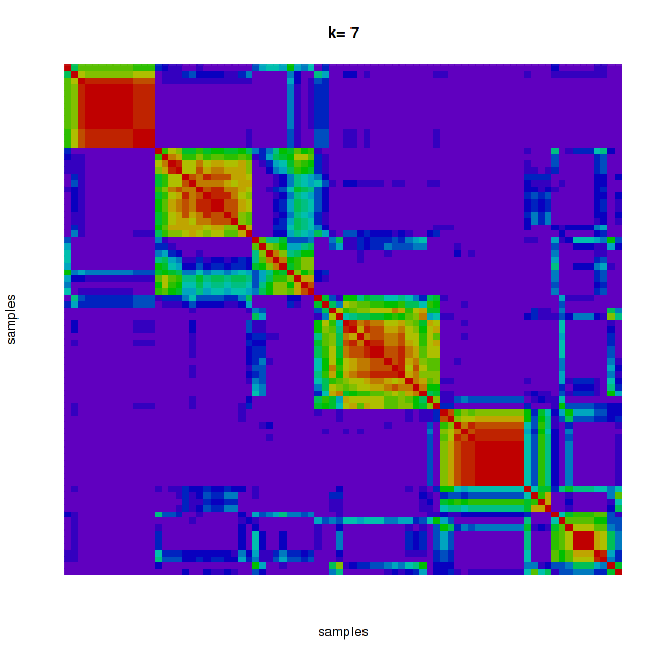 Figure 4. Get High-res Image The consensus matrix after clustering shows 7 clusters with limited overlap between clusters.